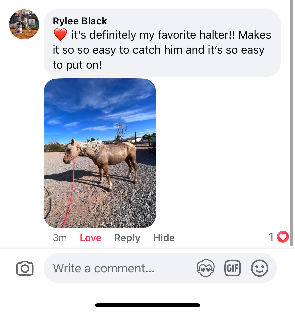 Bright, bold, and built to work, our Bright Pink Easy Hook Rope Halter is designed for everyday use while standing out in the barn.