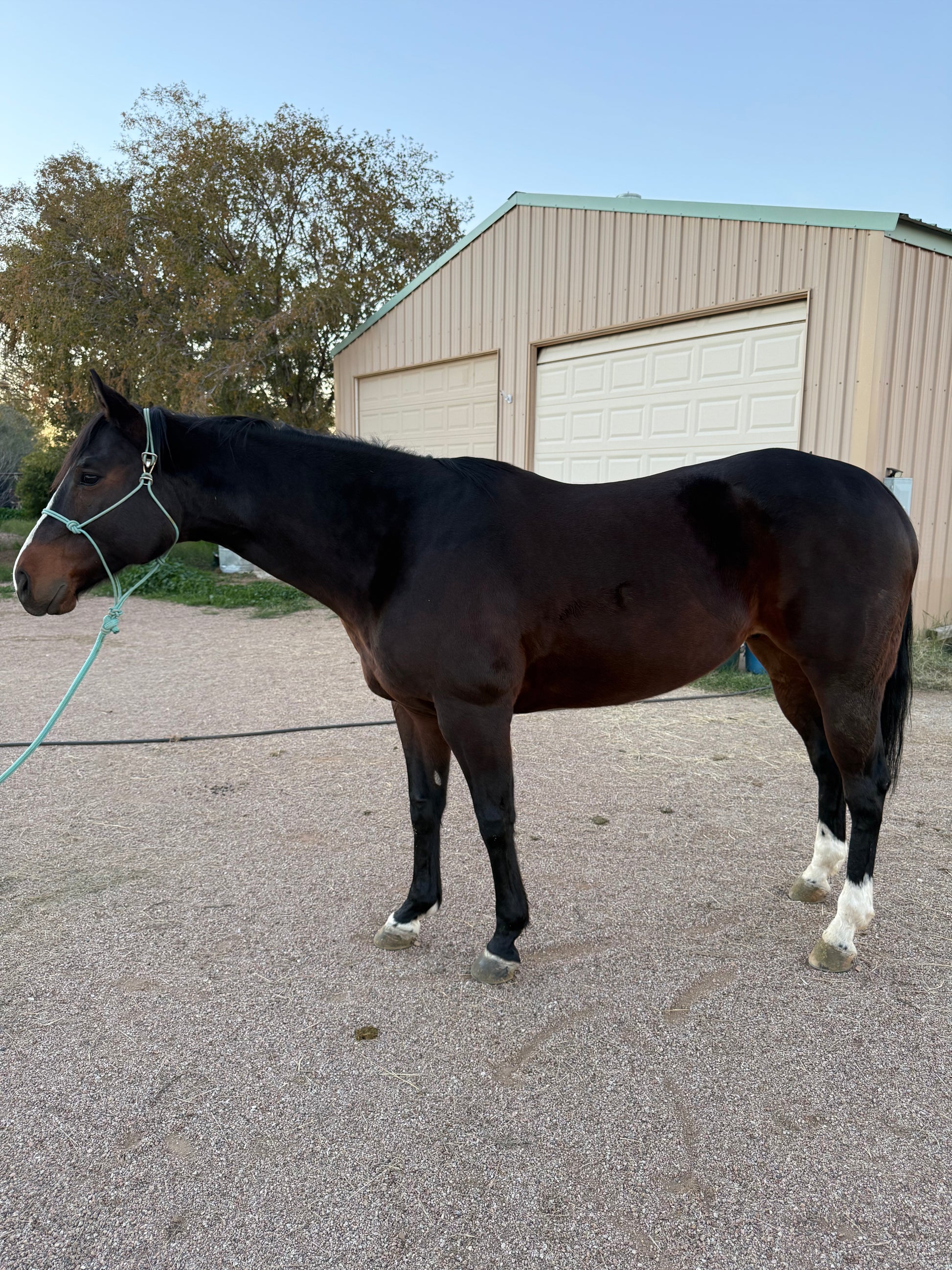 As always, made by hand in Owyhee, Nevada. Our good for any season but, especially winter halter features our signature easy-hook design and a matching 10-foot ice-blue lead rope. Made with premium, American-made rope and built for everyday use in cold or any weather.