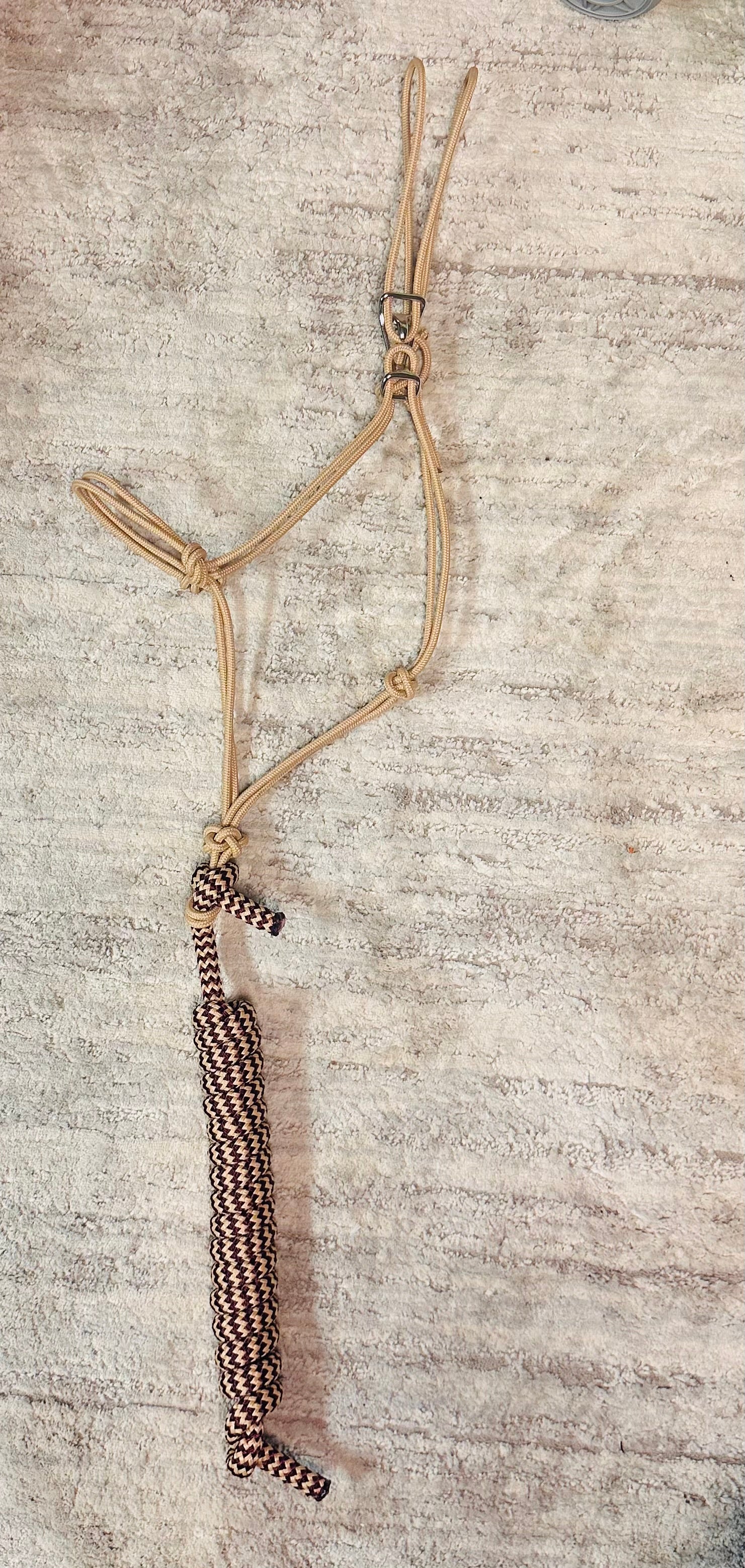 Standard horse sized easy hook halter. Comes with 10’ top quality lead rope.