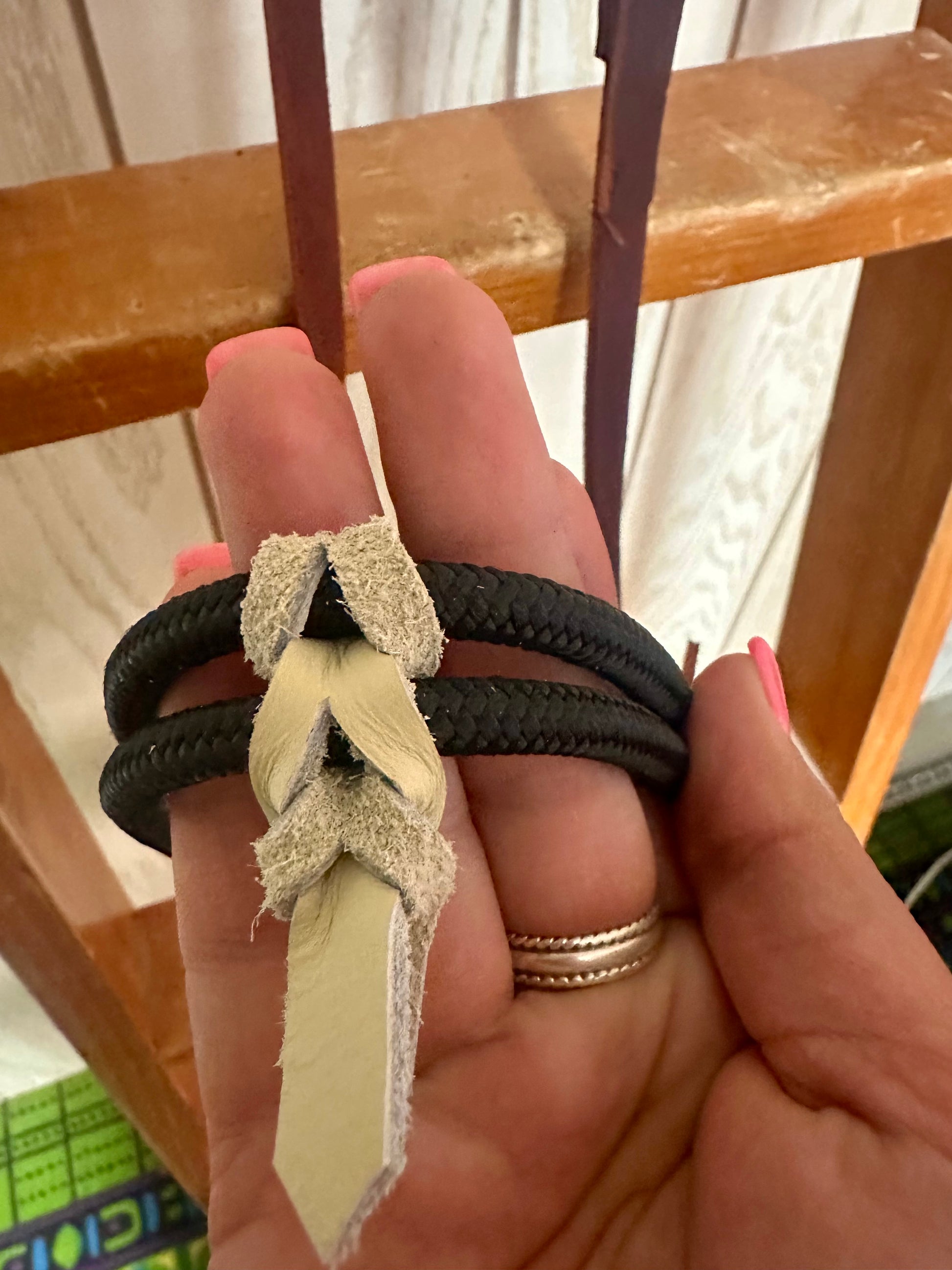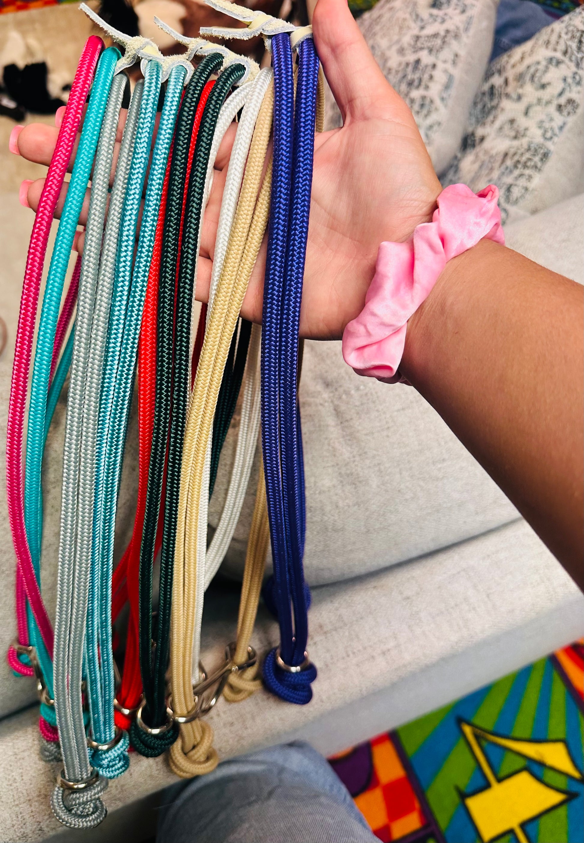 Our Tie Downs are designed with the same trusted rope used in our signature halters, ensuring unmatched strength and durability for the noseband. The hanger is crafted from high-quality leather, providing comfort and longevity while resting securely over your horse’s poll.